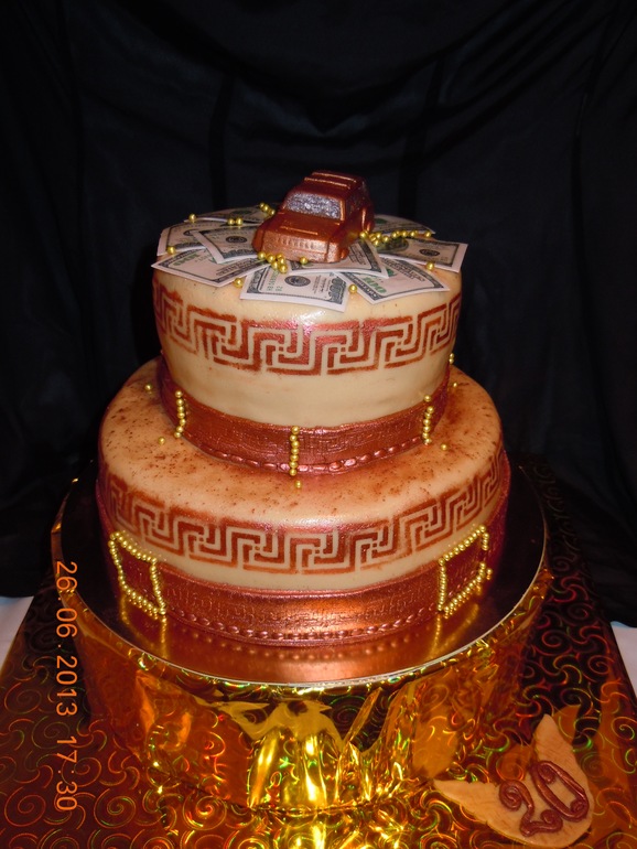 Метеорит, 3 шоколада. Вес 5800. Мой вымученный торт. Вчера с обеда с ним маялась, то бисквит плохой, то меренга течёт, то яйца не первой свежести, а под вечер Настя пролила на него воду.... До 2х ночи провозилась, на 3 шоколада меня уже не хвтило, встала и утром сделала. А с покрытием плакала, мало того, что торт перекосило, так ещё и мастика сквозь пальцы течёт, кандурином измазала, пришлось стряхивать с кисточки его на весь торт. ... Вот как-то так.
