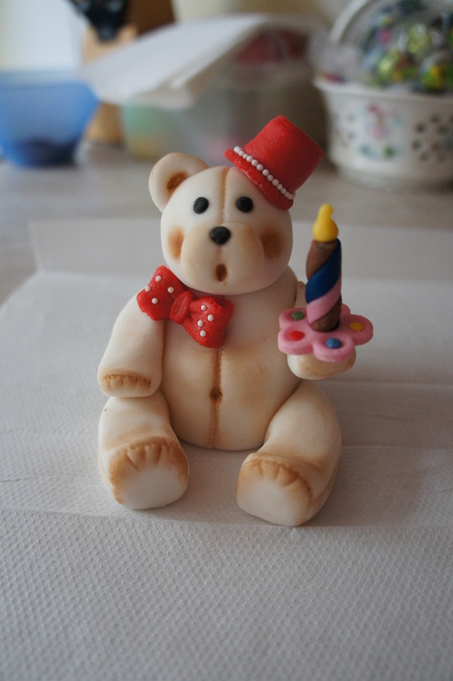 это мой второй мастичный медведь в жизни)))) будем пробовать, учиться))))))) а по расцветке вообще захотели белого, но белый он какой-то безликий получается, а сам торт будет и белый, и коричневый вот и соединила)))