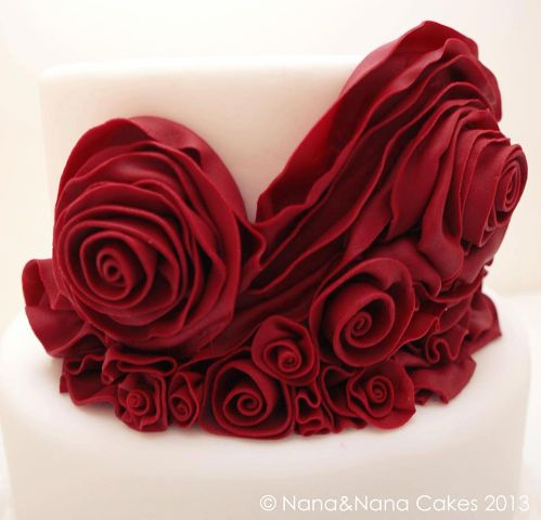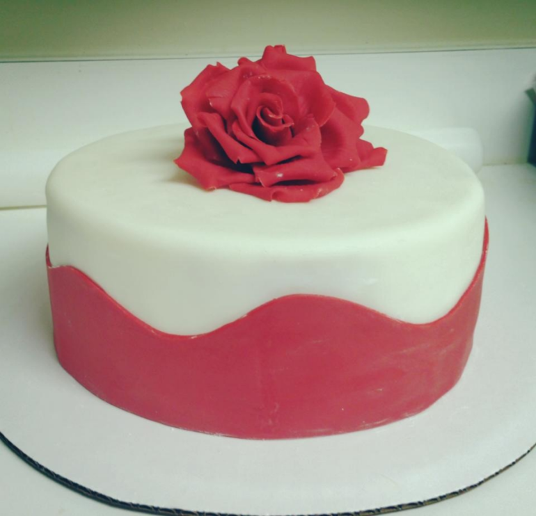 И я счастливая ринулась в бой! Покрыла торт мастикой. вышло жутко, просто ужасно!!! Мастика у меня вилтоновская, хорошая, не рвется, пластичная очень! Но, я ж умелица великая, и умею испортить даже хороший продукт;) ну, я этого и ожидала от себя после такого перерыва, поэтому не разнервничалась, а продолжила(бока-то закрыты будут), намесила красной мастики( красители тоже вилтон), все хорошо! Начинаю делать розы... Ага... Тут уж у меня все получилось, конечно;) прям как на картинке получалось в моей голове, наяву это было похоже на прошлогодний банан;) я в шоке! Что делать?!