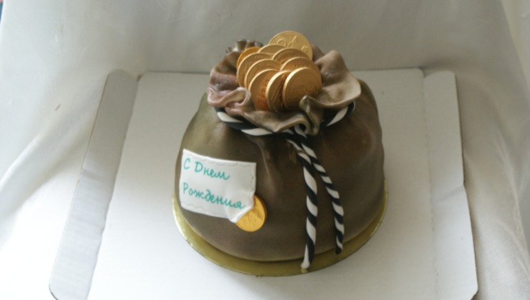 Торт мешочек с деньгами.