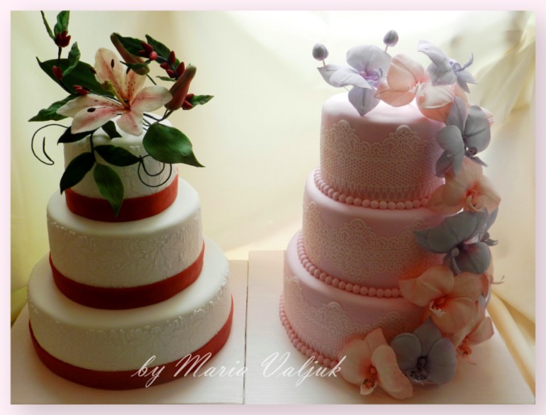 Торты свадебныене подумайте ничего дурного))) название связано с кондитерским делом)) Просто сегодня за ночь я свояла два свадебных торта) Первый с лилией, так как невесту зовут именно так и она должна быть единственной на торте)) Второй для розово сиреневой свадьбы)