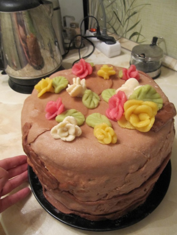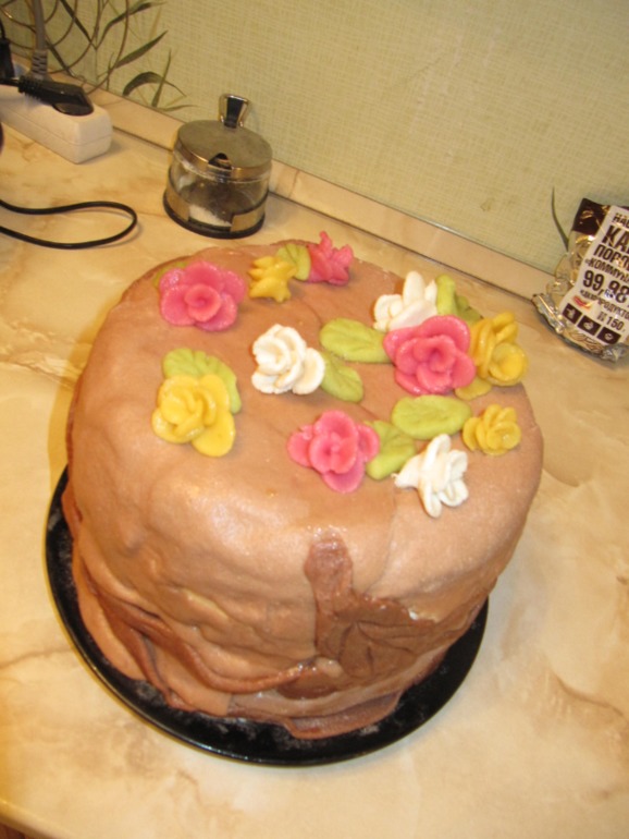 вообщем испекла я тортик себе на др. хотела попробовать украсить мастикой. не вышло. спасибо что разъяснили какие ошибки я допустила. впредь буду учитывать))))