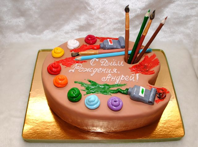 Красивый торт! а кисточки действительно как настоящие, в краске уже )