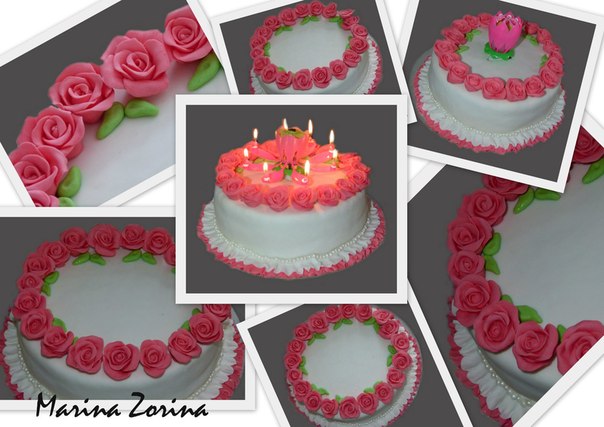 Свечка конечно надрывает мастику, надо поаккуратнее вставлять.Бока можно и кружевом, а можно расчертить так называемой алмазной нарезкой и вставить бусинки в места пересечений. Тут недавно такой тортик видела с такой боковиной (буквально сегодня).Думаю, просто надписи и украшенной боковины будет достаточно.