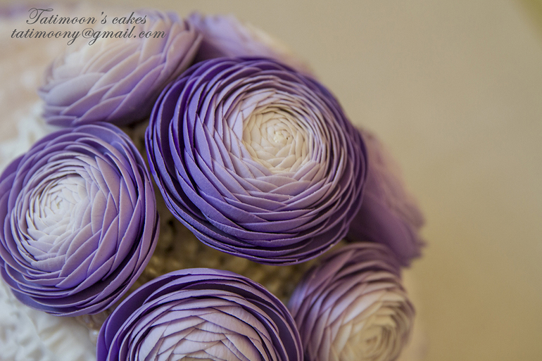 Лепестки вырезала каттером для розы, потом вайнерила каждый лепесток, подсушивала в течение минут 15-20 и собирала. Цвет в данном случае исключительно по желанию заказчика был. А в реальности надо зеленую серединку делать.
