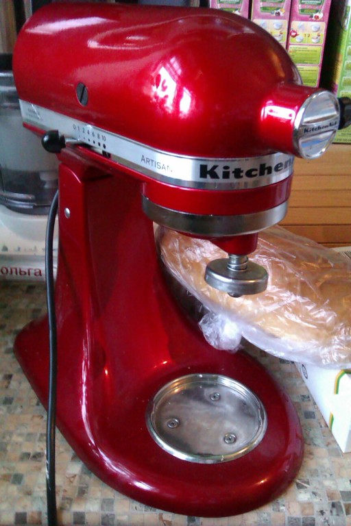 Представляю Вашему вниманию мою подружку, KitcheAid Artisan прямиком из США, к нему в комплекте шел трансформатор. Цвет малиновый лед, правда мечтала о фиолетовом