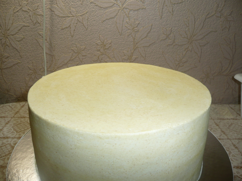 Катюш ,Маша говорила не совсем про высоту ,что бы была одинаковая,это конечно то же очень важно,она говорила именно про угол,что бы боковина была ровной.Не бойтесь что слой будет толстоватым,просто если вы не изолируете коржи и крем под выравнивающий крем,может случиться не поправимое,после обтяжки намокнет мастика и будет на этом месте дырочка.Ну вы молодец стараетесь. Удачки вам и очень правильно что выкладываете сюда свои вопросы,таким адекватным людям и помочь не жалко.