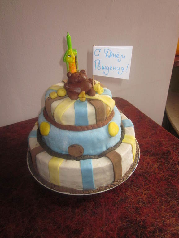 И вот мой вариант сыну на годик!!))))Это мой самый первый торт с мастикой,он же первый двухъярусник))Знаю-знаю,это было очень нагло-сразу же браться за такой сложный вариант)))