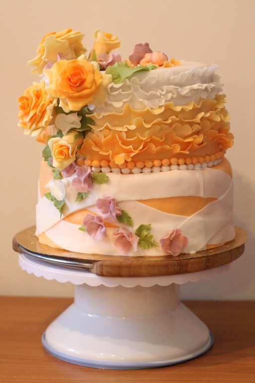 Тортик для первого раза очень симпатичный! Но конечно нужно поучиться правильной сборке (видны перекосы на фото), выравниванию и обтяжке, для начала. А сочетание цветов замечательное!
