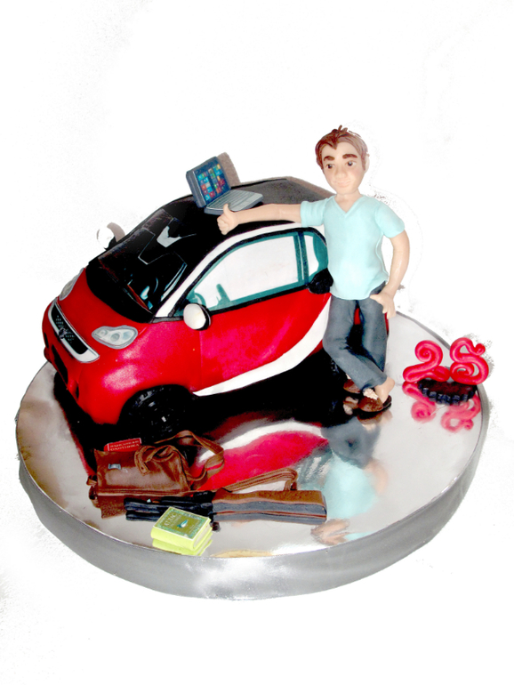 Торты для мужчиндля очень домашнего мальчика 25 лет (тапки на ногах), которого не оттащить за уши от компьютера( лэптоп на крыше) ,ну и иногда выезжающего на охоту ( карабин,справочники).И да,он недавно купил смарт(собственно торт,3 кг( ничего себе малютка,трюфель, модель1:10,25х14,5х15см)))) в общем все как всегда- куча-мала( Ленок,ЕшкинаКошка,привет-она еще и явилась за ним в 8 утра, вместо 3 дня, хорошо успела доделать,но фоткатьвремени не было в отместку мариновала полчаса в коридоре чтоб фотик хоть чутка зарядился. плакаю