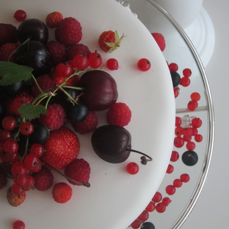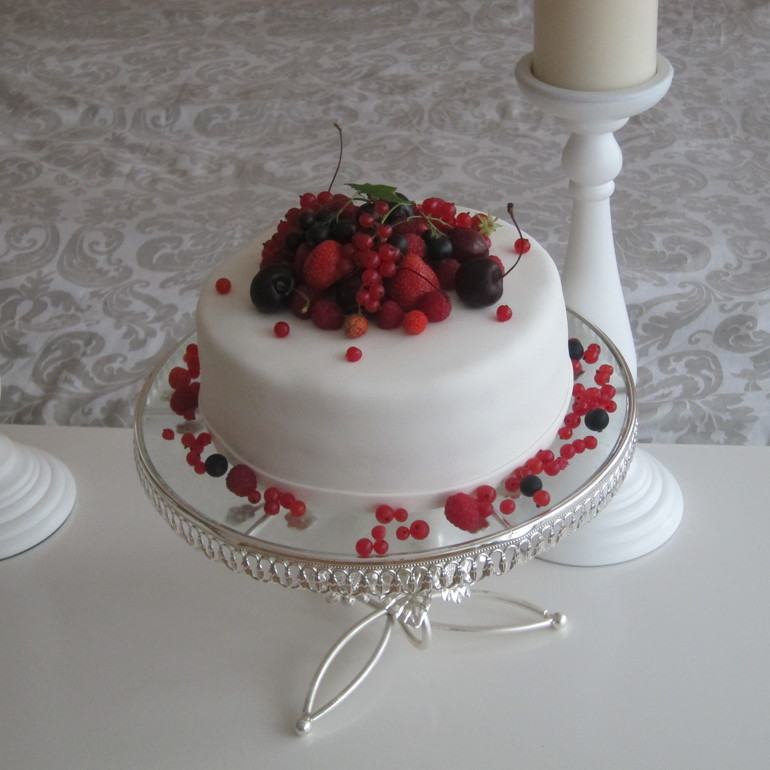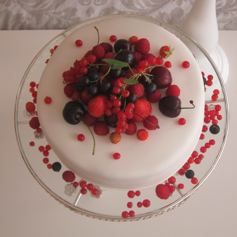 а вы ягодки крепили чем-то?? я, наверное, такой же попробую — а то первый раз мастику хочу сделать и покрыть, красителя нет, тоже просто белая будет... вот думала-думала, как украсить, и увидела ваш)