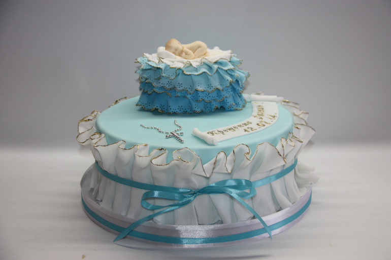 Чудесный тортик! Только малышок немного замерз без одеялка)) Такой бледненький))