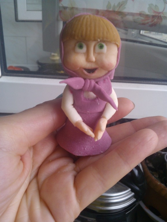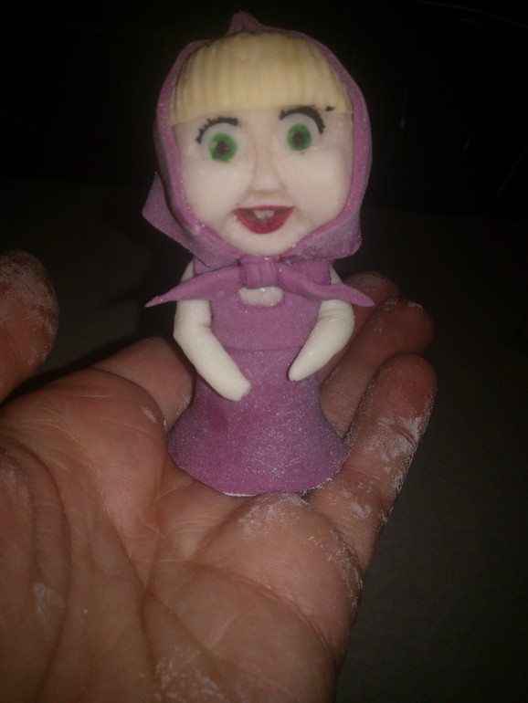 Тут и я Ольгу поддерживаю:) еще учиться и учиться. Еще б мастику хорошую купить. "мертвая маша вылеплена из покупной,но она прямо растекалась на руке от тепла.а от домеса пудры терялась ее пастообразная консистенция. А вторая маша из желатиновой по рецепту хегай.но у меня что-то не вышло,она получилась очень мягкой,но вместе с тем очень крохкой. Делала цветочную по рецепту хегай осталась довольна,а этой нет.
