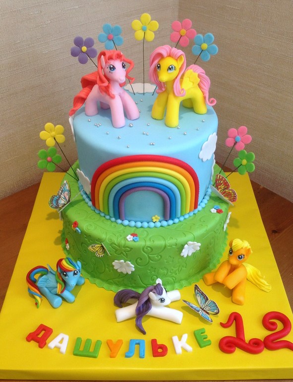 Здравствуйте Тортик на картинке я точно не помню, но думаю 5 кг, не меньше1 кг-1500Фигурки пони-500 р штОстальной декор входит в стоимость тортика