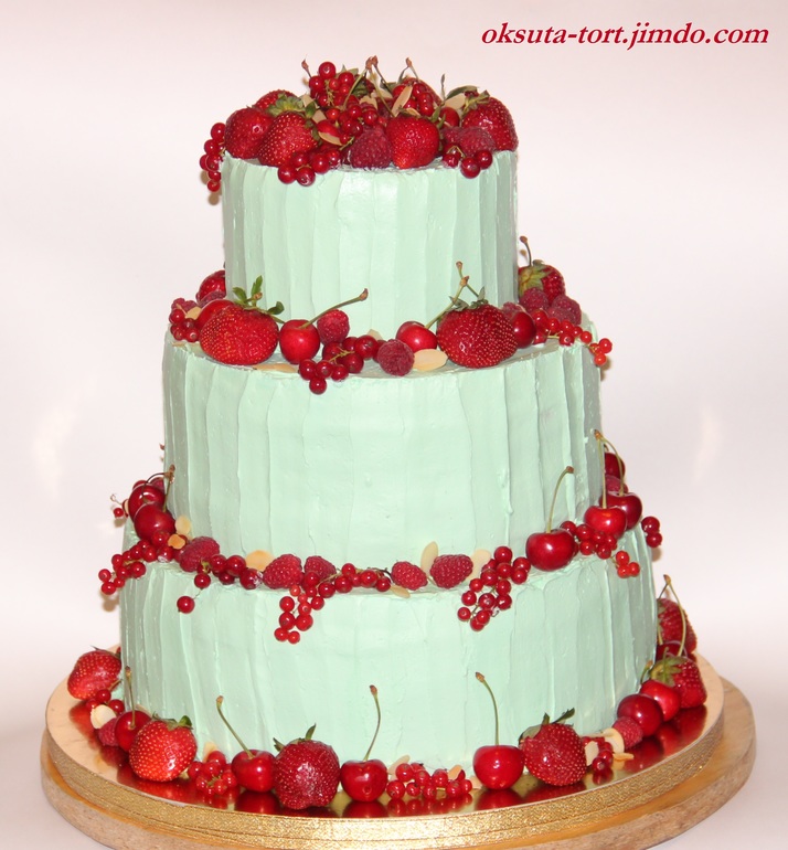 Красавец!!!!!! Цвет крема очень интересный, хорошо ягодки красные на его фоне смотрятся.Вот думаю, что бы не было трещин — нужно какое-то очень эластичное покрытие, глазурь может, на основе желатина. Или готовую брать, даже и не знаю.