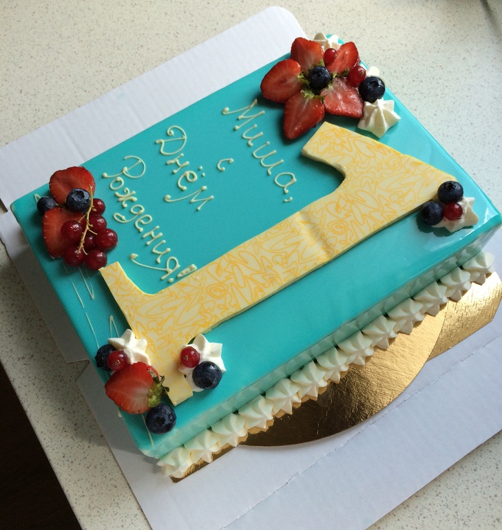 Украшение тортов кремом,шоколадом, фруктамиЕще один тортик с единичкой. На этот раз торт "Йогурт-маскарпоне"