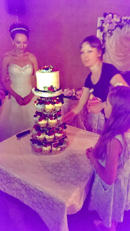 если смотреть на рядом стоящий желтый торт, то видно как у него оплыла мастика к низу!