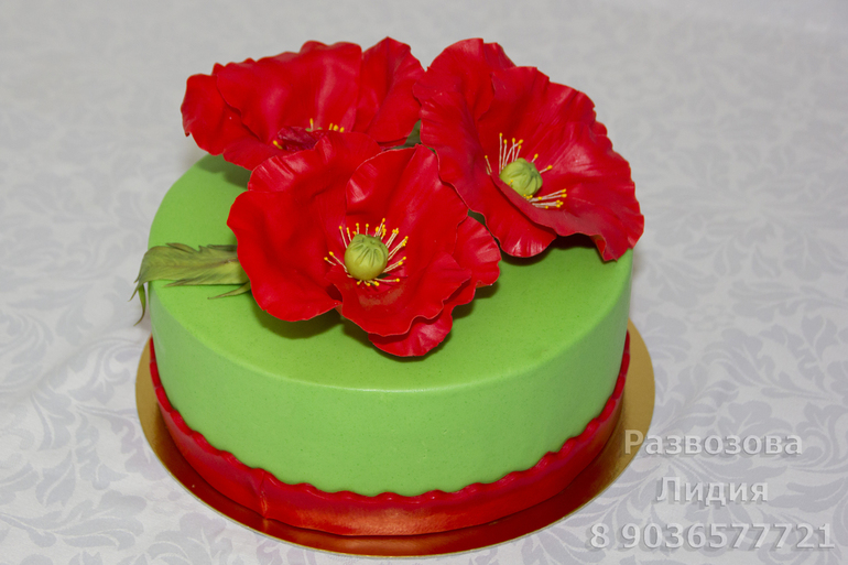 Торты для женщинЗаказали торт за 3 дня до отъезда в отпуск, хотела отказаться, но очень просили. Конкретной темы не было, просили яркий и цвета любимые - красный и зелёный. Цветы делала ночью, вдохновившись мк из журнала Торт Деко, за сутки торт был готов. Спасибо старшему сыну, он гулял с младшим, пока я торт выравнивала.