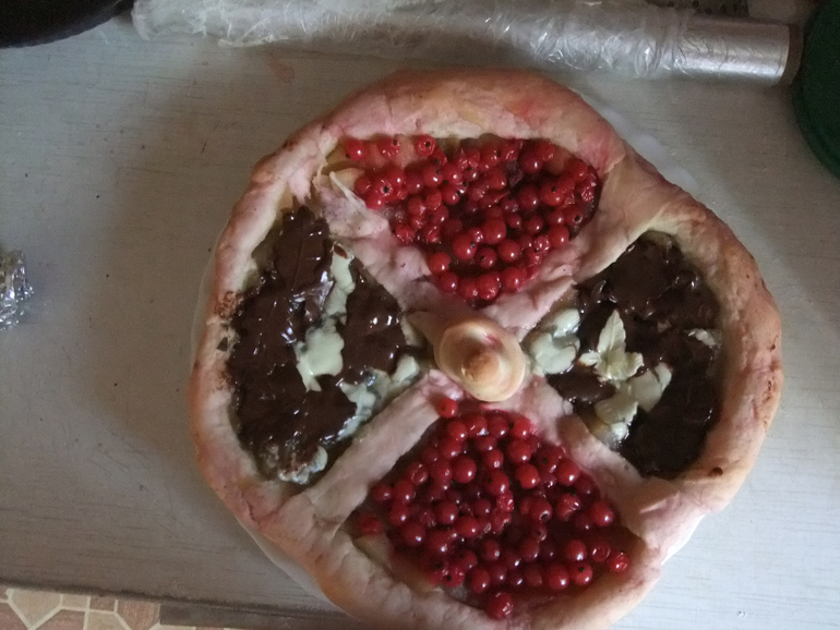 Спасибо за ответ...Тесто дрожжевое,покупное.Начинка внутри яблоко,с верху красная сморидина и шоколад(черно-белый)