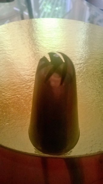 Привет, anami! Извини, не знаю имени. Именно такой насадкой такие красивые розы, как на фото торта и получаются.Не знаю правильного названия. В интернете написано так: предназначена для создания цветков с помощью закручивания при выдавливании материала. А то что на фото как корона с зубцами — это открытая роза и ею таких глубоких рельефных лепестков — надо очень постараться — что бы добиться.) У меня ею не получается. Она такой рельефный конус дает для капкейков.