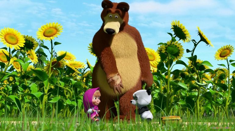 Маша и Медведбь и торт с тачками