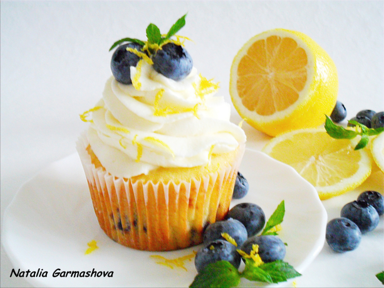 Капкейки и КейкпопсыОчень нежные и сочные ванильно-черничные капкейки с легким кремом и освежающими лимонно-мятными нотками)