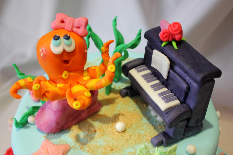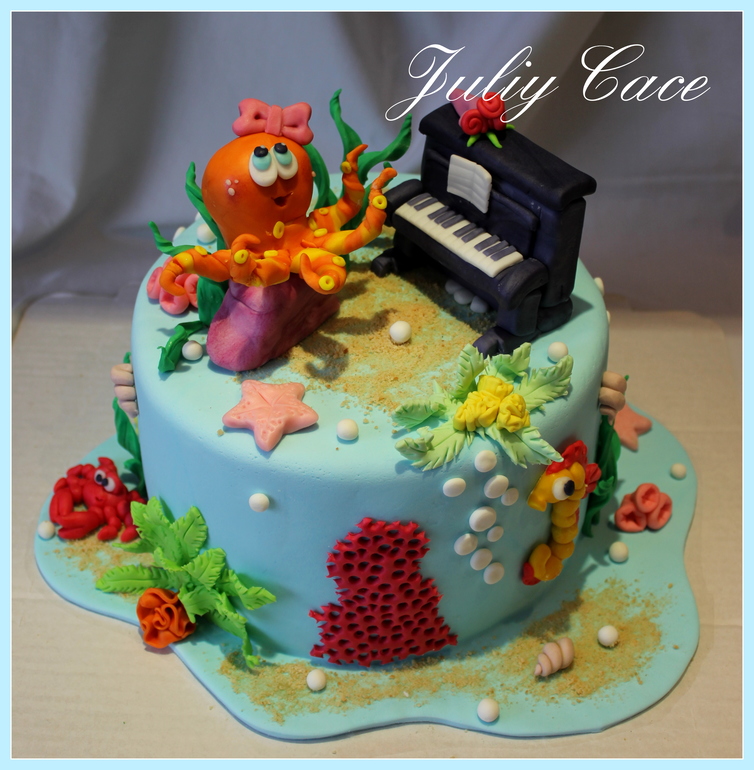 Торты детскиеДля маленькой девочки, которая играет на пианино и жить не может без моря.