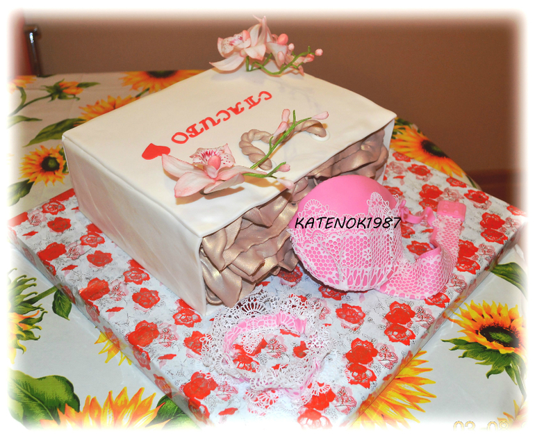 Я работаю в компании, которая занимается производством нижнего белья, вот мои коллеги заказали тортик для своего руководителя :) В общем прорекламировала себя на основной работе :)