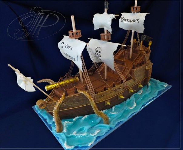 ВОПРОСЫ кондитеровДевочки, всем привет!!!! Помогите пожалуйста!!! Хочу сделать вот такой тортик, как сотворить бушующее море, что лучше использовать чтоб получилось реалистично??? И из чего лучше сделать паруса? Из мастики или из сахарной бумаги?? Заранее спасибо!