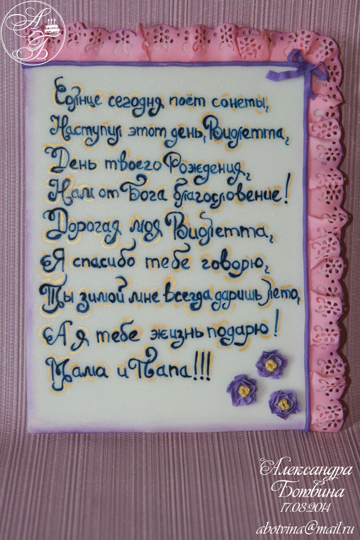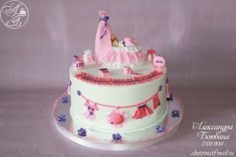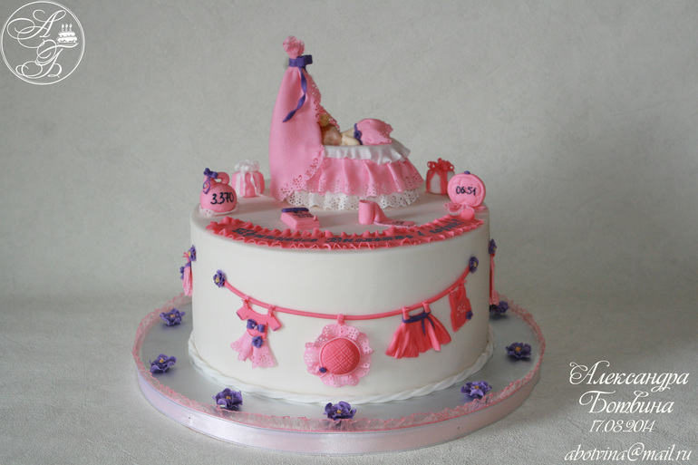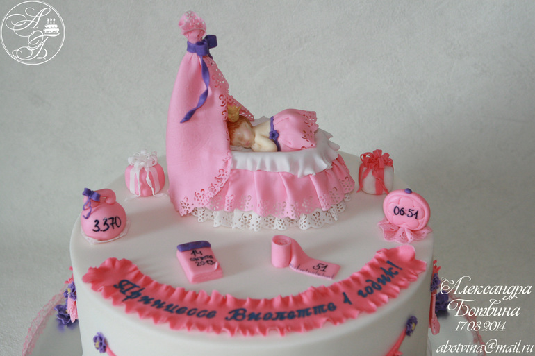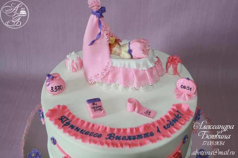 вот, Сашуль, скажи, да: внешне кажется заказчику, что "а чего там делать-то? за пару часов управитесь", а на самом деле ооочень много работы, и понятно это только тем, кто своими руками так лепит.. когда спина не разгибается и даже от запаха мастики мутит... торт получился чудесным! очень нежный и девчачий!