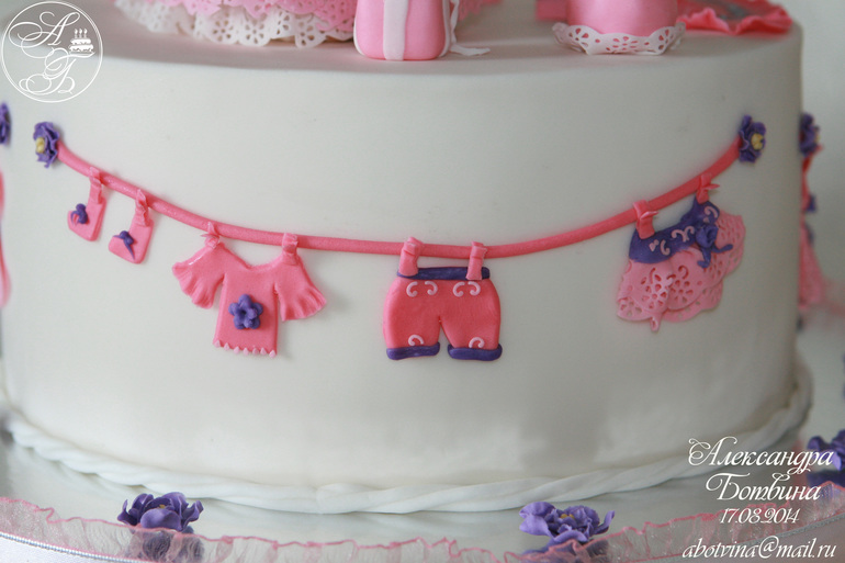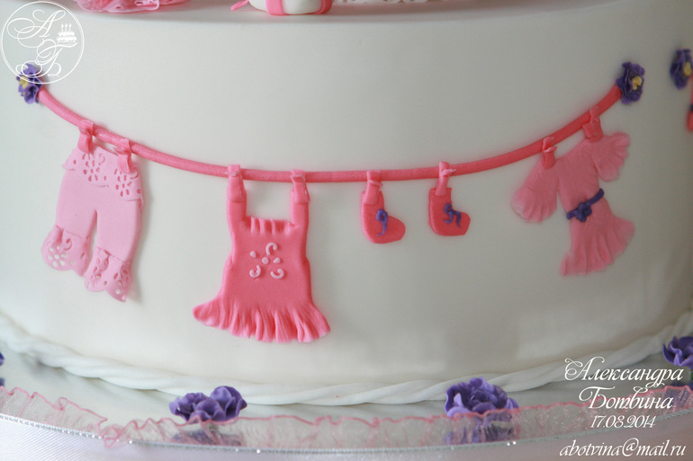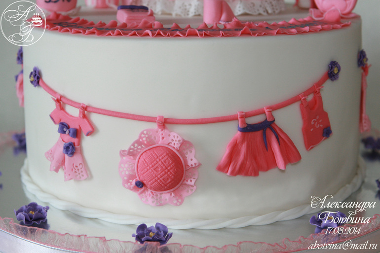 Вещички висели на 3х веревочках,по всей окружности торта.