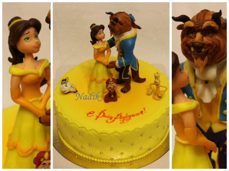 Красавица и Чудовище дизайн сначало другой хотела, но сильно накосячила и заново перетягивала торт за час до приезда заказчицы )) а так целый день лепила этих героев, очень понравилось. высота красавицы 13 см, высота Чудовища 16 см