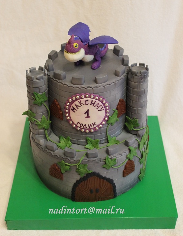 Торт с драконом для племянника мужа на годик, вес где-то 5 кг, внизу шоколад на кипятке, шоколадный мусс+ вишня, верх птичье молоко