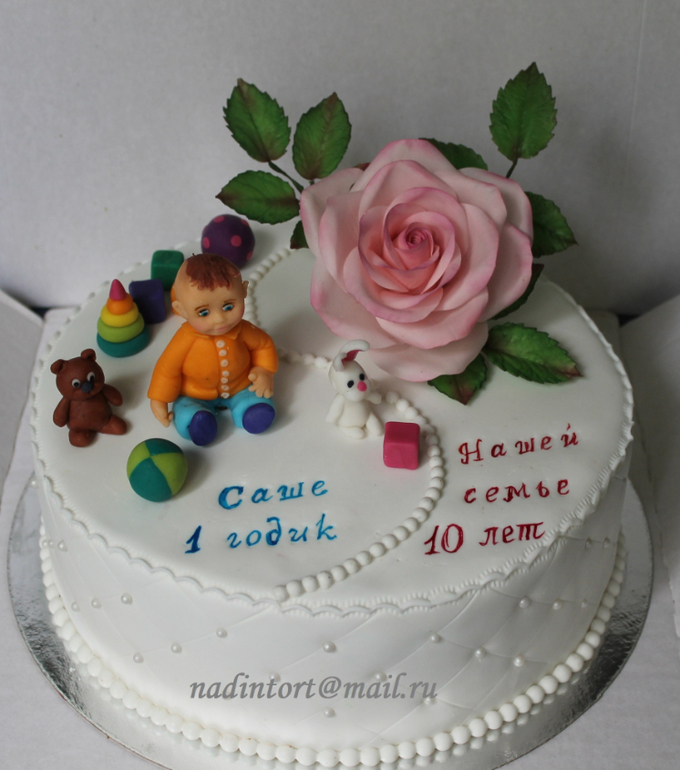 торт на двойное событие, годик младшему и годовщина розовой свадьбы