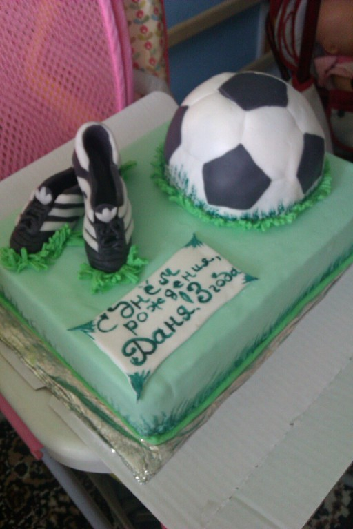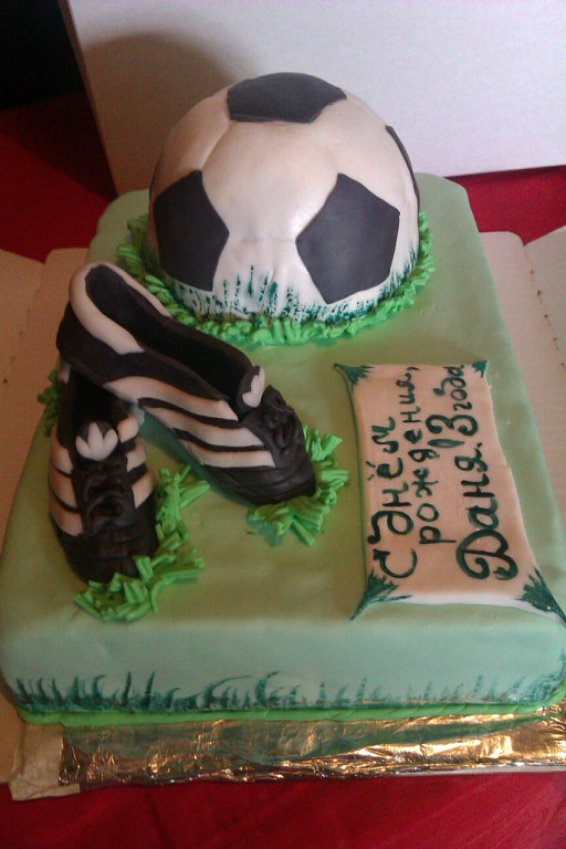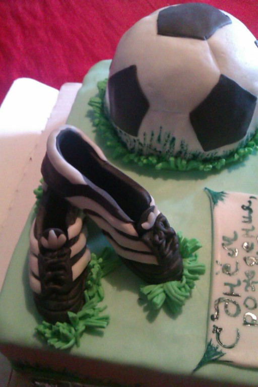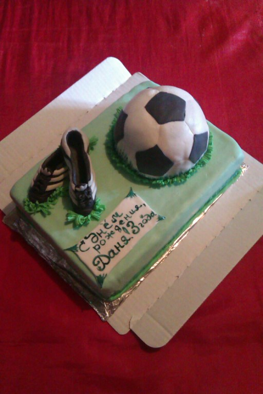 бутсы отличные, а вот в целом у торта и мяча очень не важное выравнивание и то, что торт делался срочно не оправдание мастеру: не можете делать быстро и качественно — лучше не браться.