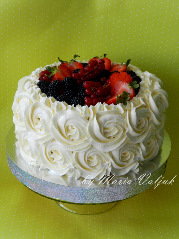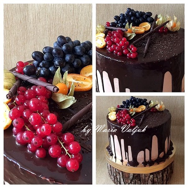 Украшение тортов кремом,шоколадом, фруктамиМестная ягодка почти отошла, импортной почти не найти в магазинах( , а тортиков у меня накопилось не мало, покажу несколько)