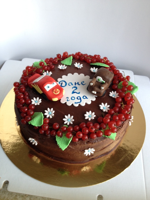 Первый безмастичный тортик. Сверху ганаш, внутри бисквит зебра со сливочным кремом с шоколадом