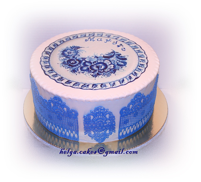 Торты для женщинБыло много мыслей, как и что сделать. В итоге - этот простой вариант. Мама любит гжель)) По причине катастрофы со временем получилось вот так вот... Начинка: кофейный торт, 4 кг. Мама счастлива!