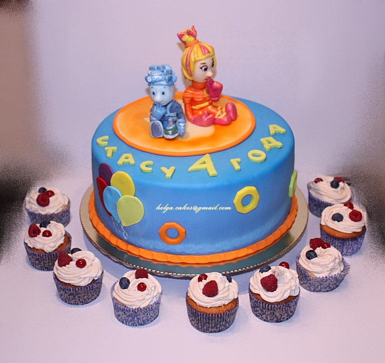 Торты детскиеТортик и капкейки для сыночка ББ-шечки Яны. Надоел мне бело-желто-оранжевый вариант(( Решила разбавить синим!))