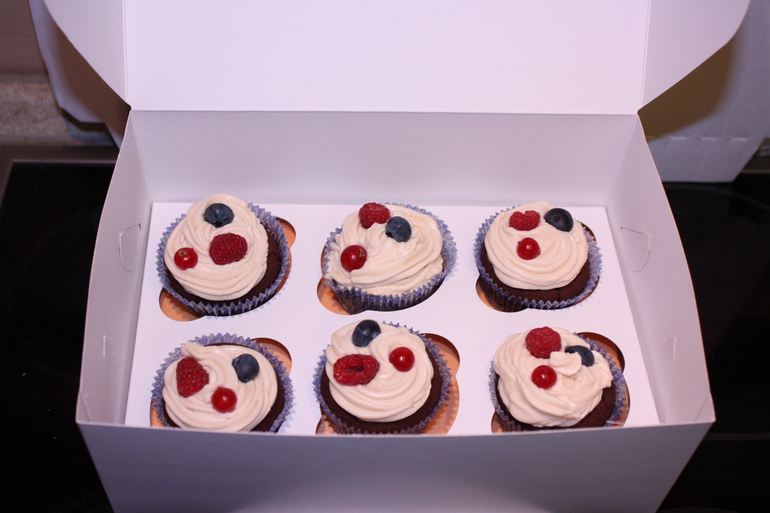 Торт 3 шоколада, вес 4,3 кг. Ванильные и шоколадные капкейки, крем маскарпоне с карамельным топингом, свежие ягоды, начинка - шоколадный ганаш.