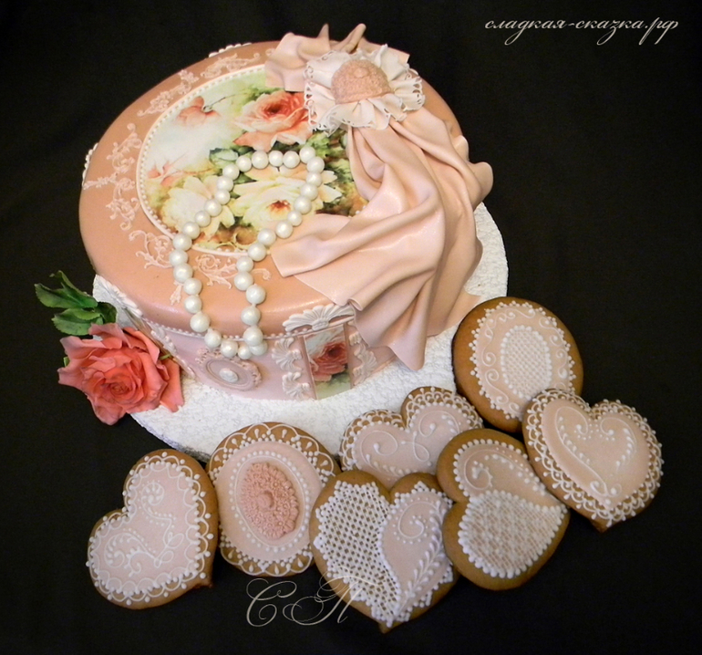Все очень красивое и тортик и прянички!