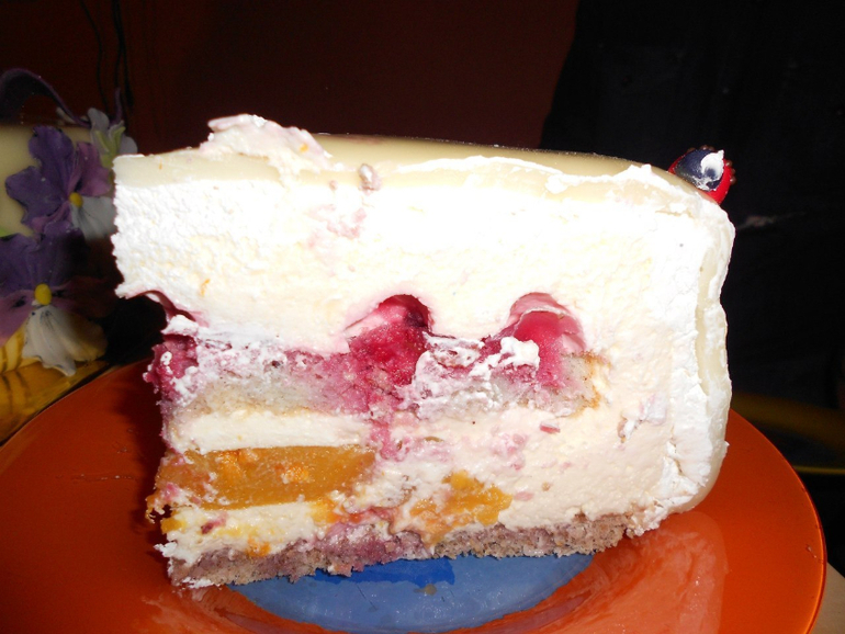 вово — толстый боковой слой, который к тому же в нарезке отходит от самого торта навевает мысли о том что никакая это не глазурь! Тут толщина явно3-4 мм, никакая глазурь на боках такой толщиной не ляжет, хоть что мне пусть говорят...