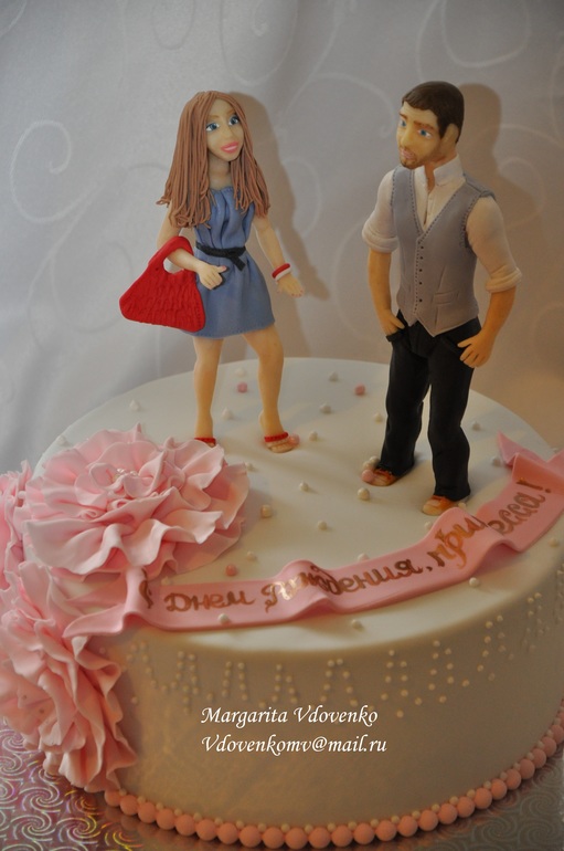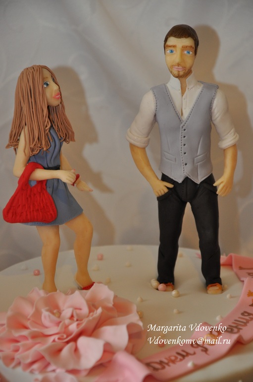 симпатишно ))) это ейный жених? )))) это портретная лепка? сумочка отпаднаяа чей это курс был? а фигурки не раскачиваются на торте?