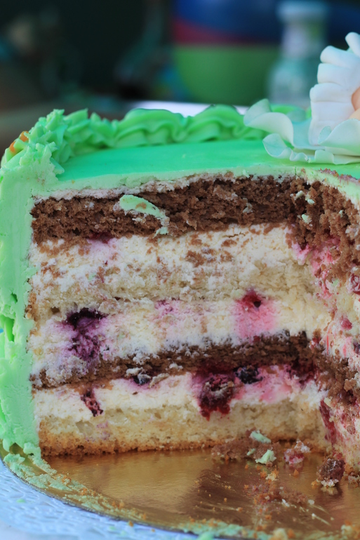 В тортике точно уже не помню, вроде бы сливочно-творожный. А вот розочки из ганаша на белом шоколаде