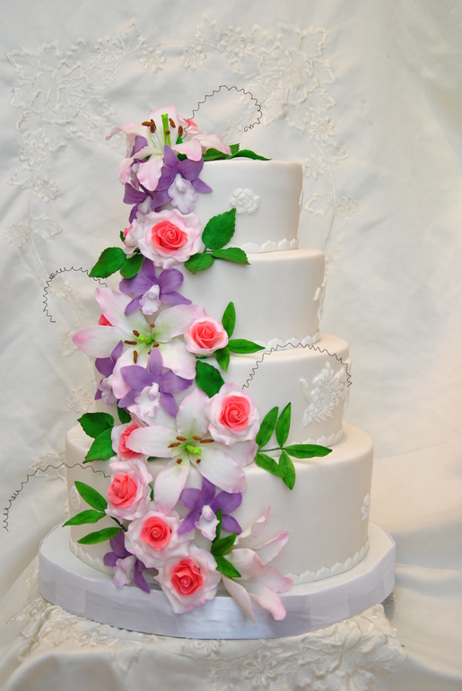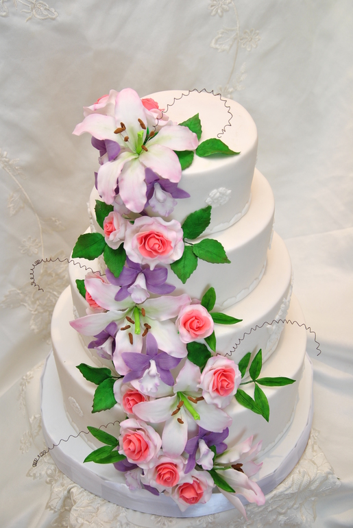 Очень красивый, аккуратнейший тортик! Каскад прелестен! А вот проволока такая тут совершенно лишняя!