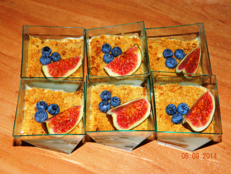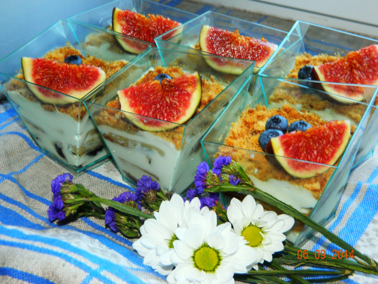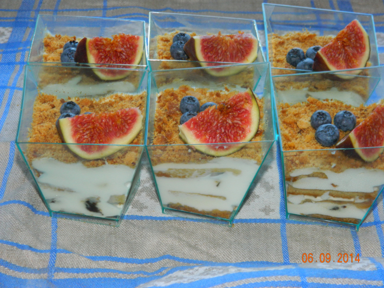 Десерты в стаканчиках — очень модно сейчас. Мне кажется, может путаю такие стаканчики с десертами называют "веррины". Может ошибаюсь. Но подача не только оригинальноя, а еще и очень практичная и удобная для поедания.))) Мне очень нра!!!!!!!