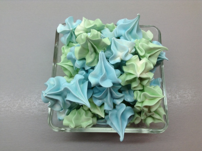 Безе не пекут, а сушат, там температура 100 градусов)))) отсаживаю их прямо на пекарскую бумагу,которая уже лежит в противине. Ставлю три противень сразу и режим в духовке конвекция. Важно весь взбитый белок сразу поставить в духовку, а то если он взбитым будет ждать очереди, то осядет, и безе не получится))))))