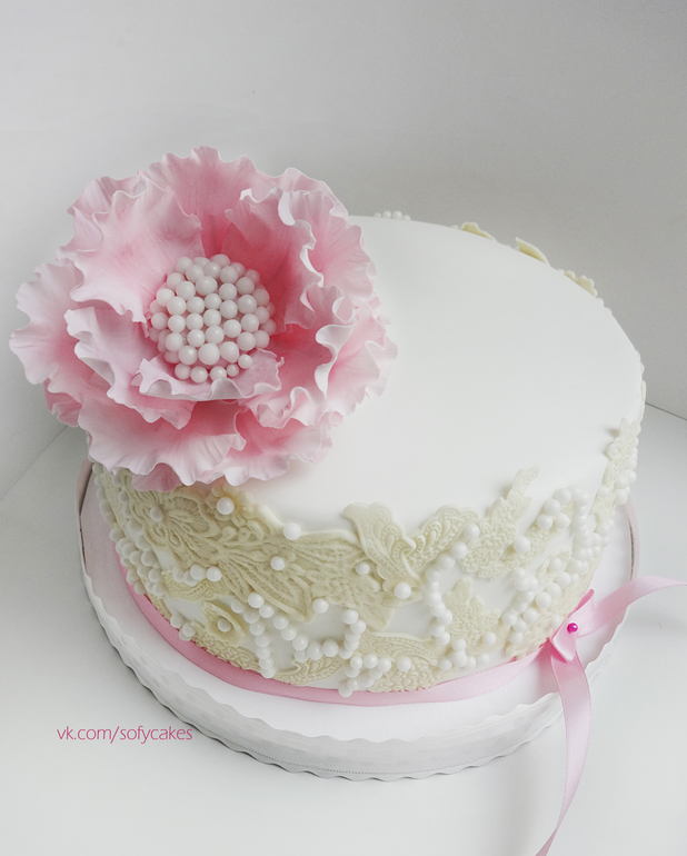 Тортик на небольшую свадьбу))) Вес 4 кг. Внутри "Молочная Девочка" с клубникой и бананом) Жаль... фото бледненькое получилось)