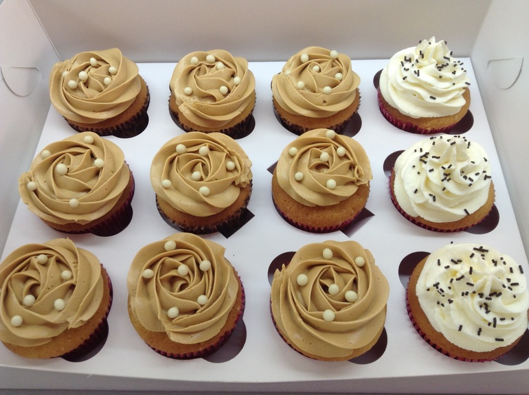Капкейки и КейкпопсыКапкейки ванильные со карамельно-сливочным кремом и сырно-сливочным с маскарпоне без начинки по желанию заказчицы.