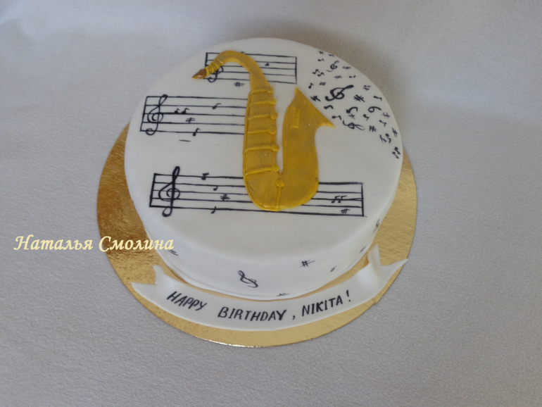 Торт для 11-летнего мальчика, который увлекается английским языком, плаванием и игрой на саксофоне, в общем молодец парень!